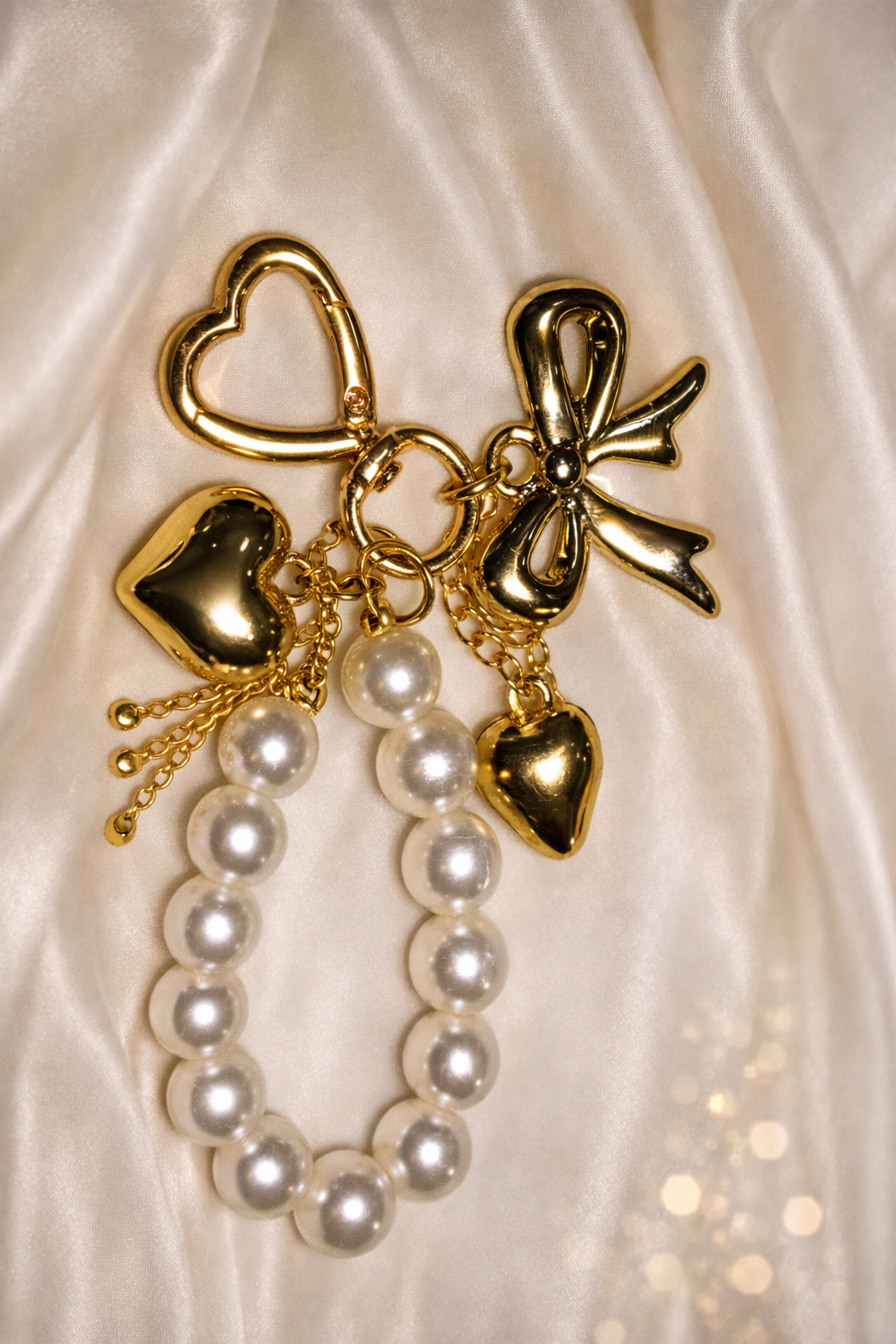 ✨ Gold Bow & Pearl Charm Bracelet