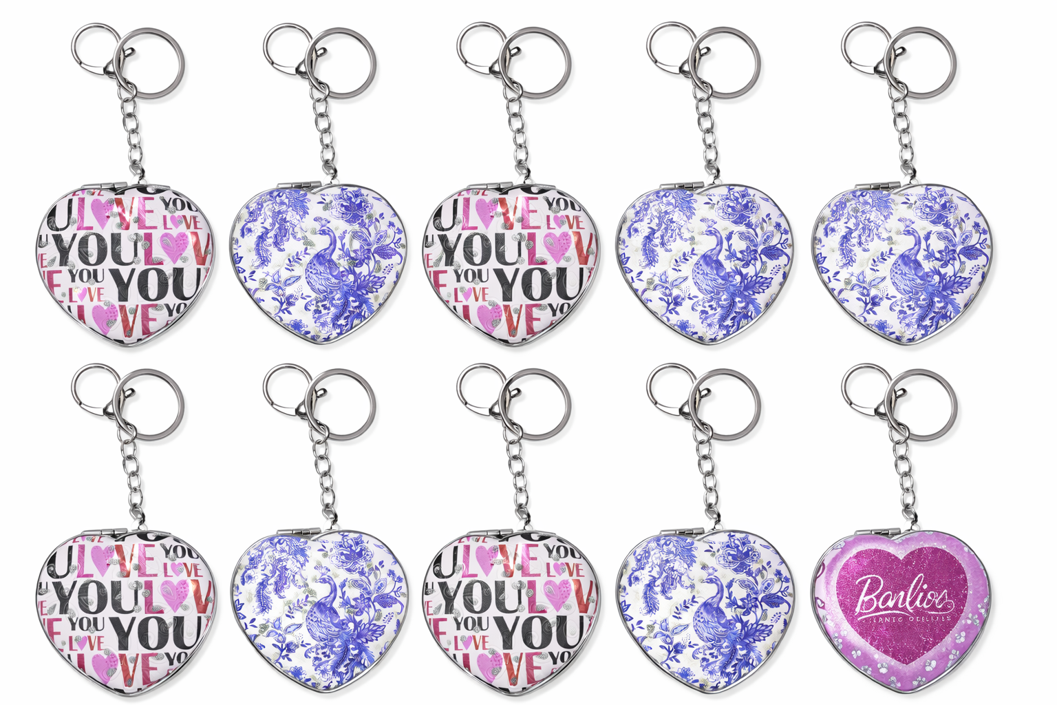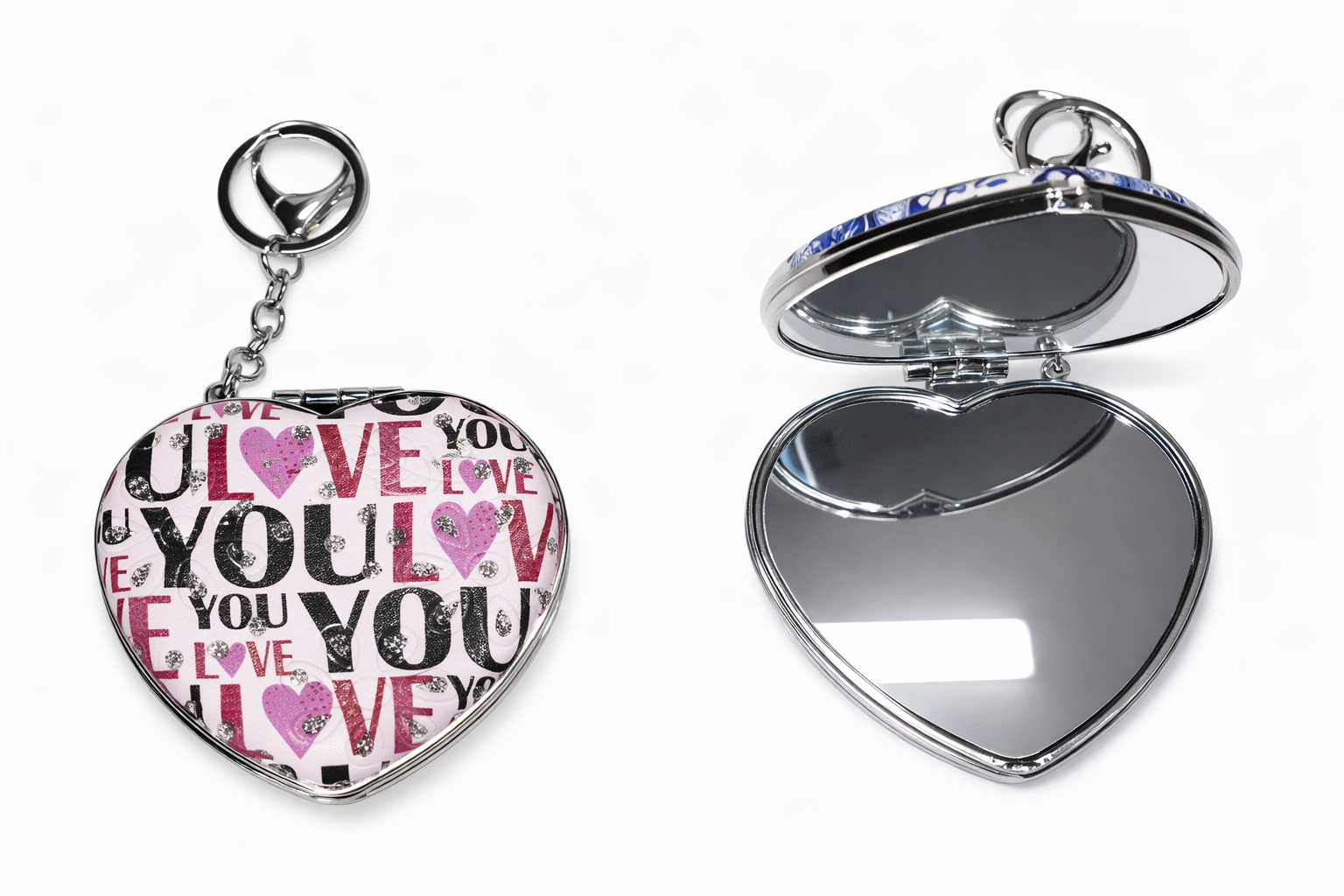 💗 LOVE YOU Heart-Shaped Compact Mirror Keychain
